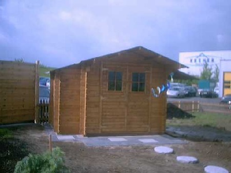 Innerhalb weniger Tage war das Gartenhäuschen aufgestellt und die Fläche davor gepflastert.